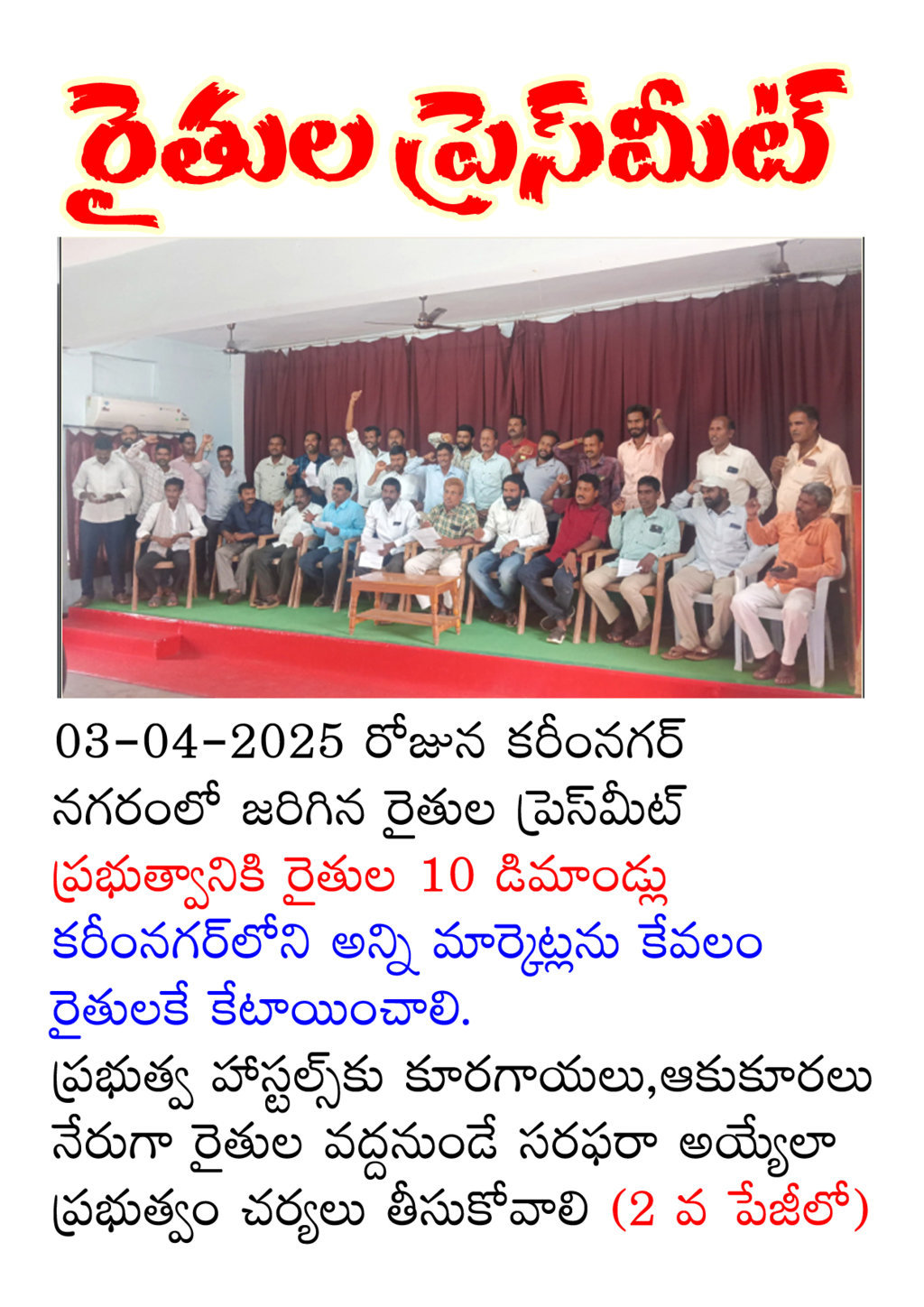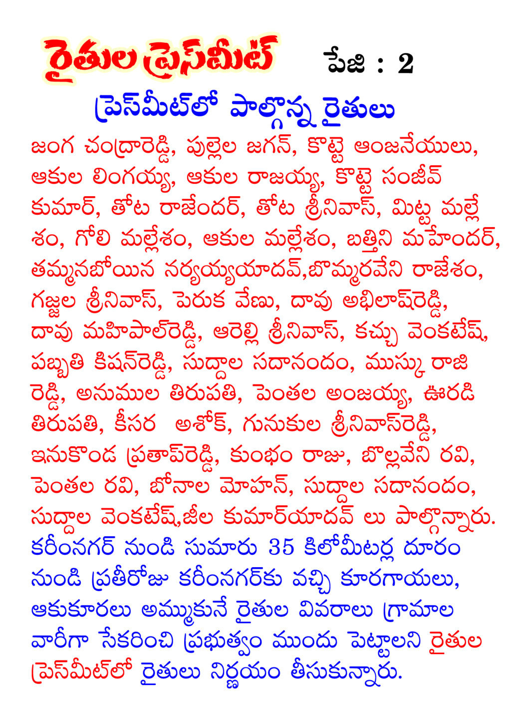రైతుకుటుంబాలు అన్ని రైతులకే ఓట్లు వేస్తే రైతులు గెలిచి ప్రభుత్వాన్ని ఏర్పాటు చేస్తారు. రైతులు గెలిస్తేనే రైతుకుటుంబాలు బాగుపడతాయి. రైతులు అభివ్రుద్ధి చెందుతారు. |