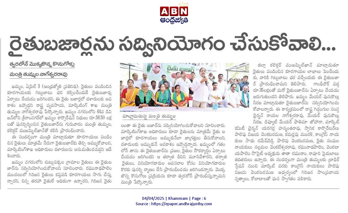 1. andhra jyothy news (khammam) 04-04-2025 ![]() 2. eenadu news (khammam) ![]() 3. namaste telangana news (khammam) ![]() 7. prajapaksham news (karimnagar) ![]() |